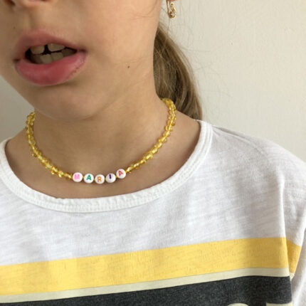 Ne scriu zilnic mămici care ne povestesc că nu-și mai pot dezlipi copiii de bijuteriile noastre din chihlimbar. Așadar, vom construi cu drag un colier și pentru copilul tău.