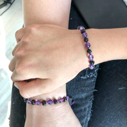 Set Brățări Ametist & Chihlimbar Negru – Copil & Adult | Calm Profund și Protecție Naturală