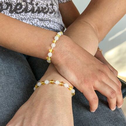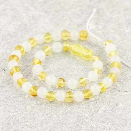 Set Brățări Jad Alb & Chihlimbar Galben – Copil + Adult | Puritate și Armonie pentru Toată Familia