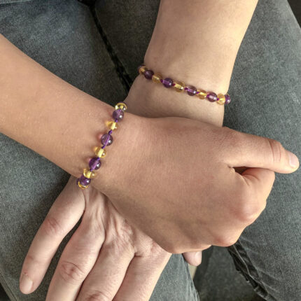 Set Brățări Ametist & Chihlimbar Galben – Copil + Adult | Liniște și Echilibru pentru Toată Familia