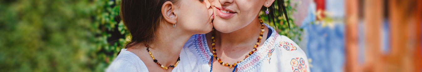 Set coliere din chihlimbar baltic pentru mama si copil