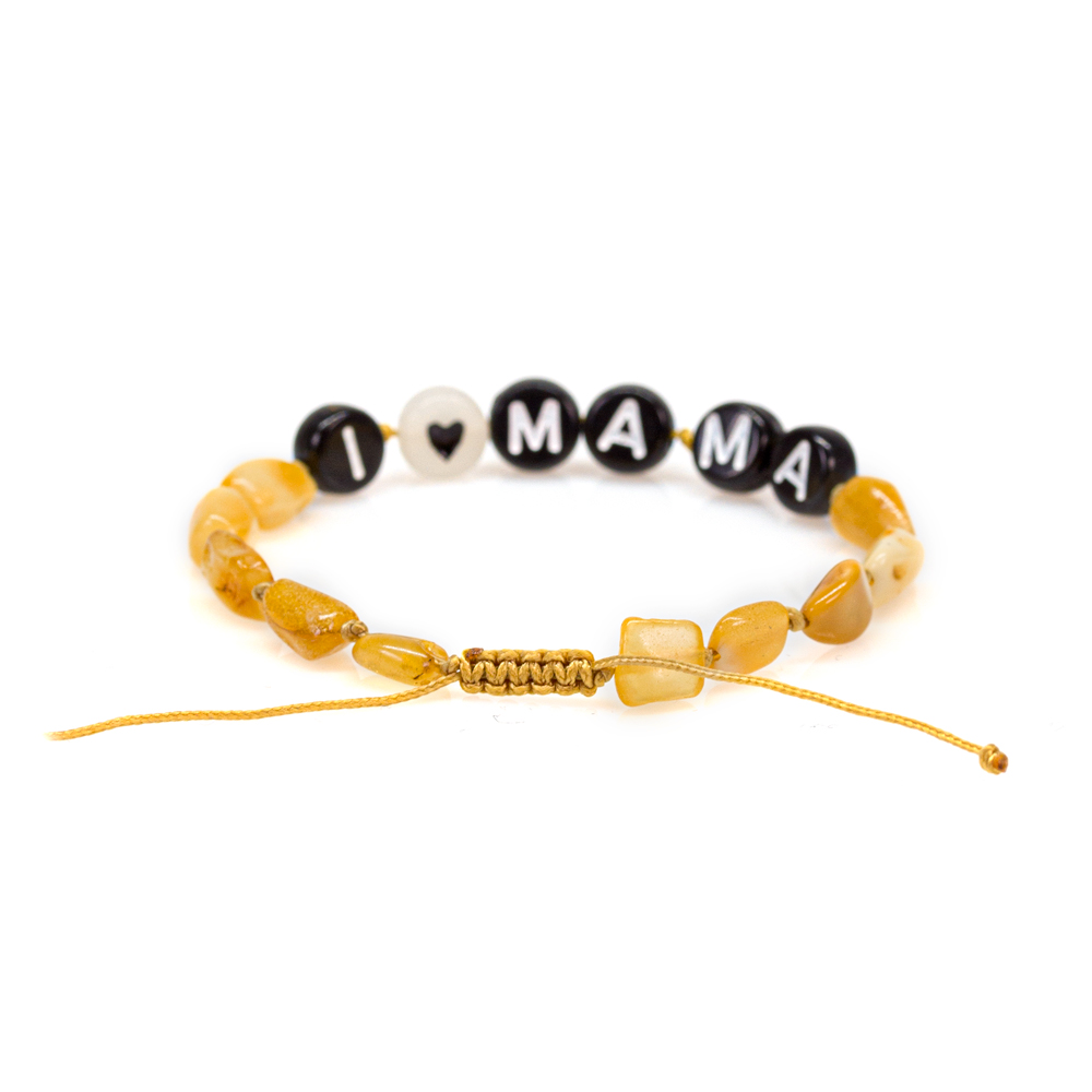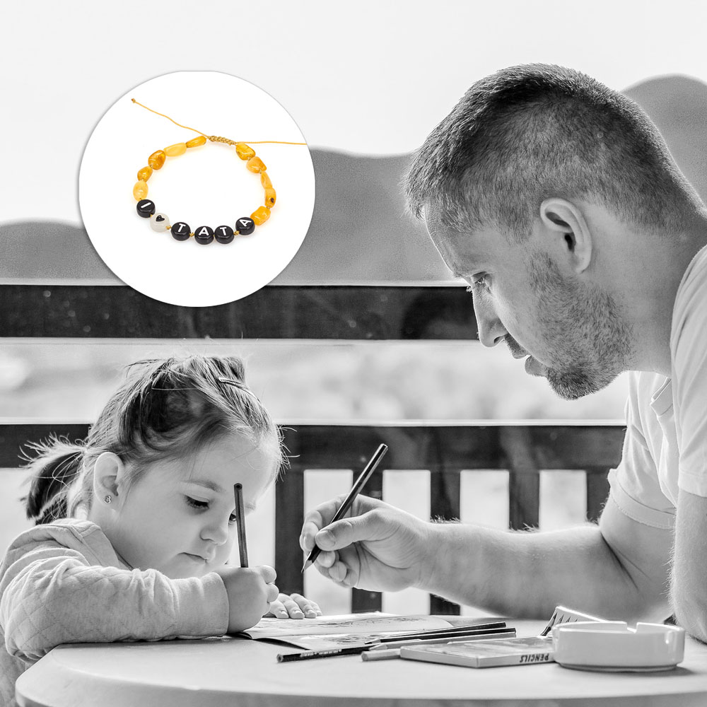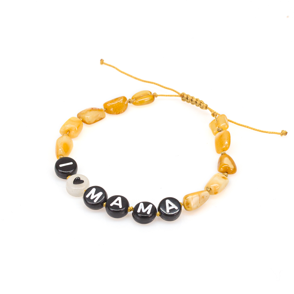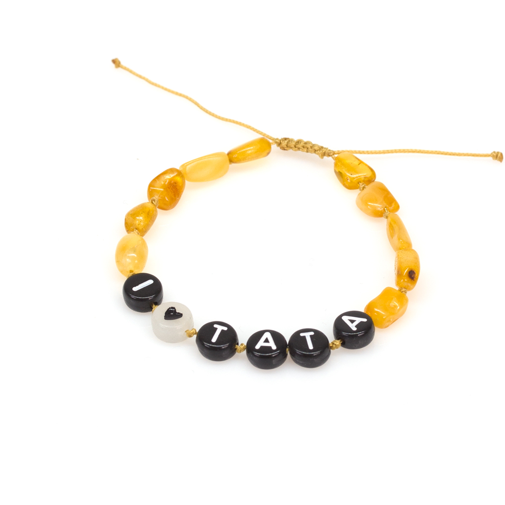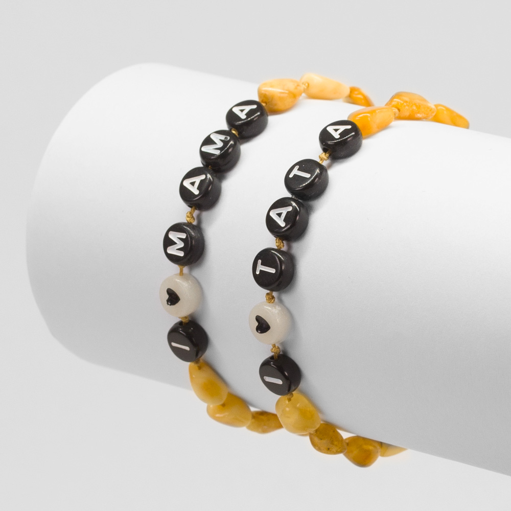 Bratara chihlimbar copii cu mesaj: „i Love mama & i Love tata”