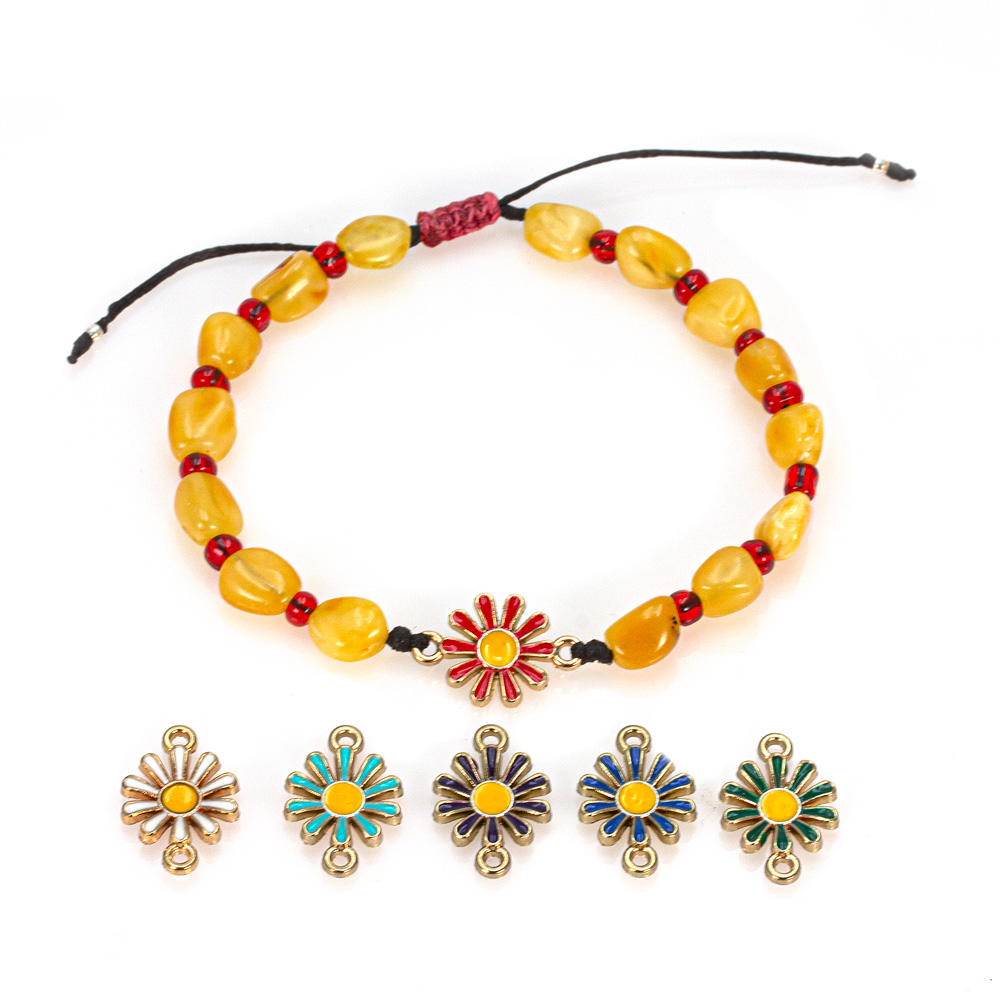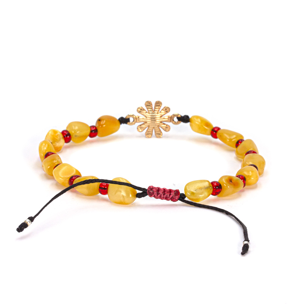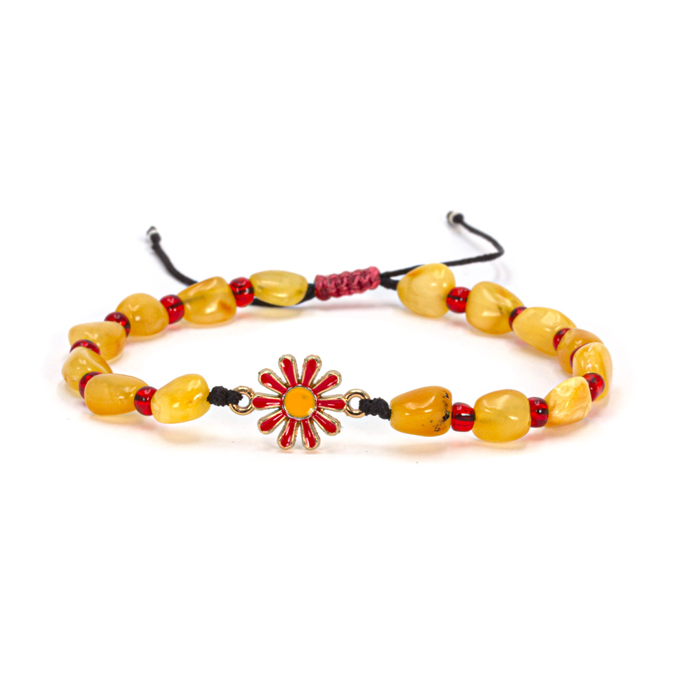Brățară ediție limitată din chihlimbar galben decorată cu margele de nisip și charm floare. Un cadou ideal pentru o ocazie specială sau pur și simplu pentru a te răsfăța.