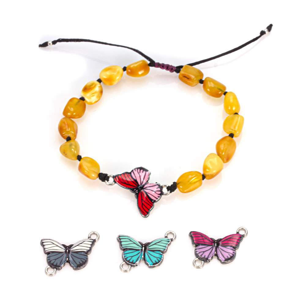 Ediție limitată! Brățară chihlimbar galben decorată cu charm fluture. Perfectă pentru a te răsfăța sau oferi un cadou unic.