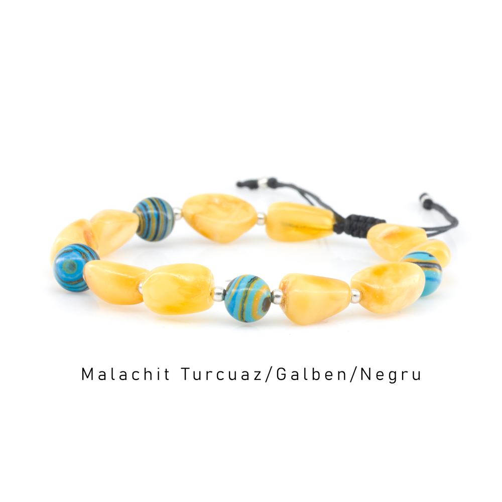 Brățara unisex chihlimbar & malachit