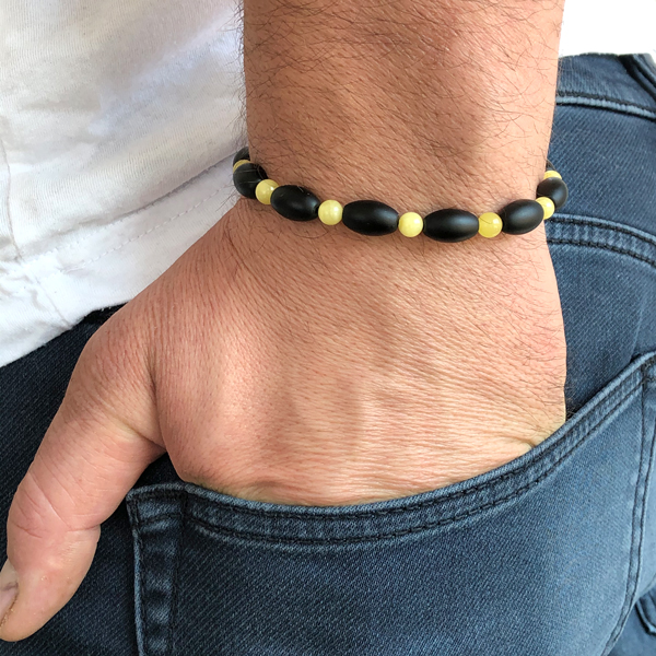 Brățară bărbați din chihlimbar baltic galben & onix