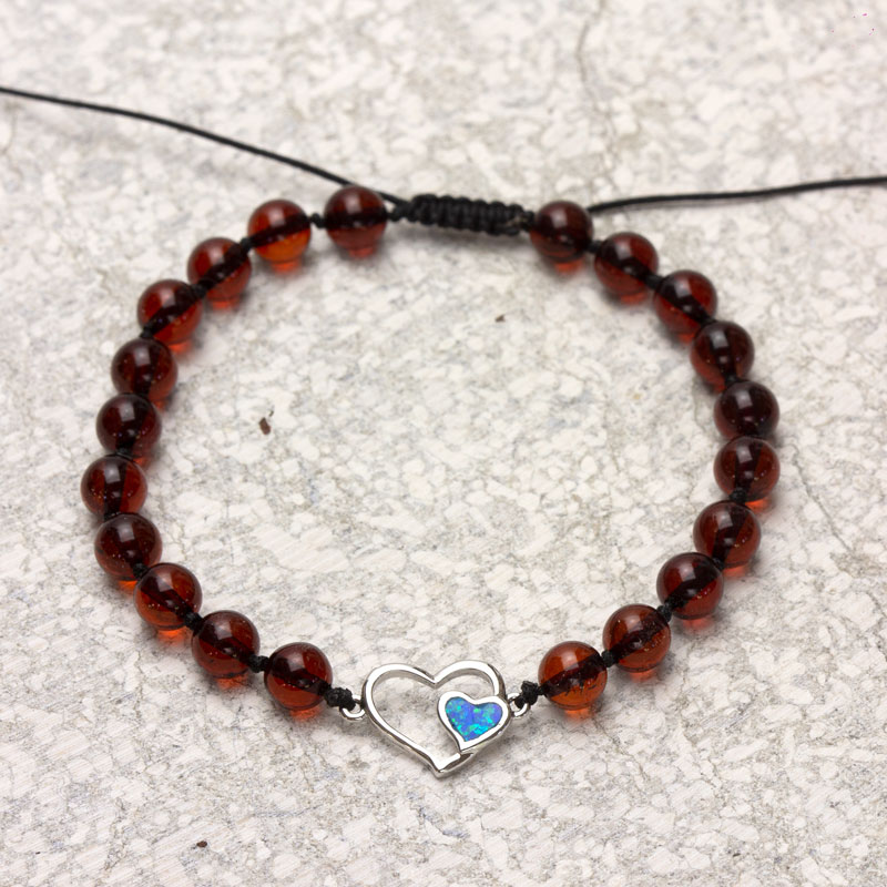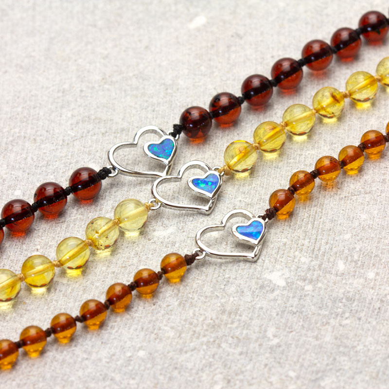 - brățară din chihlimbar baltic galben, maro sau negru cu charm inimă;