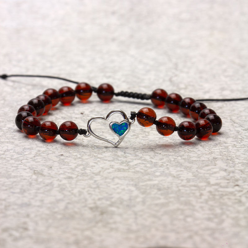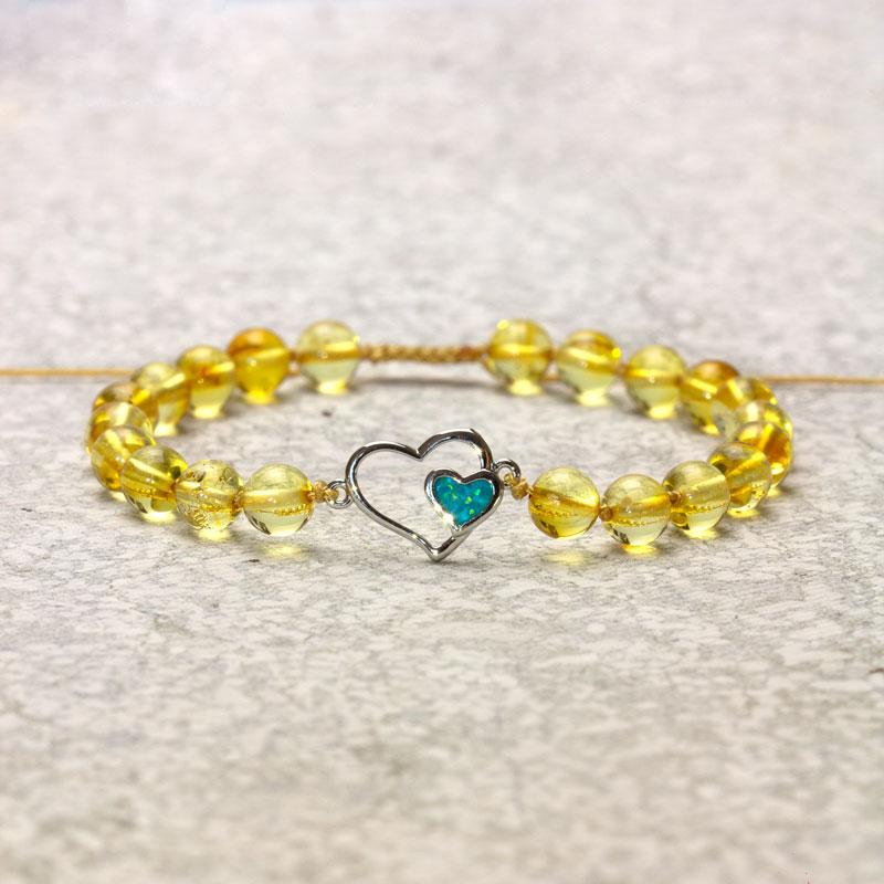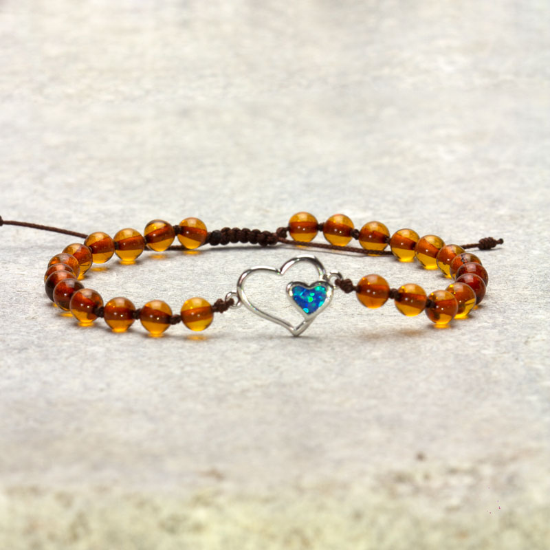 Brățară reglabilă din chihlimbar baltic & charm inimă