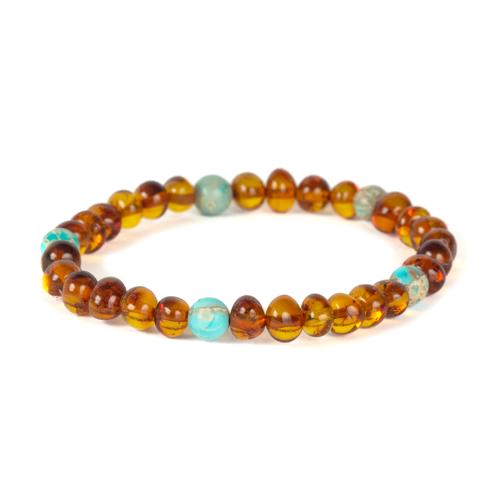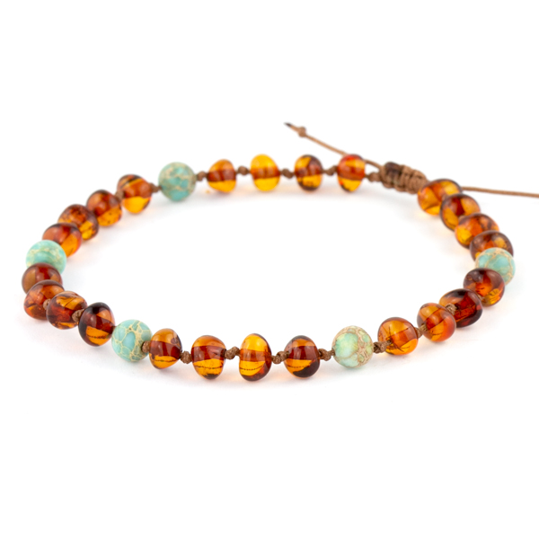 Brățară chihlimbar baltic maro & jasp imperial turcuaz