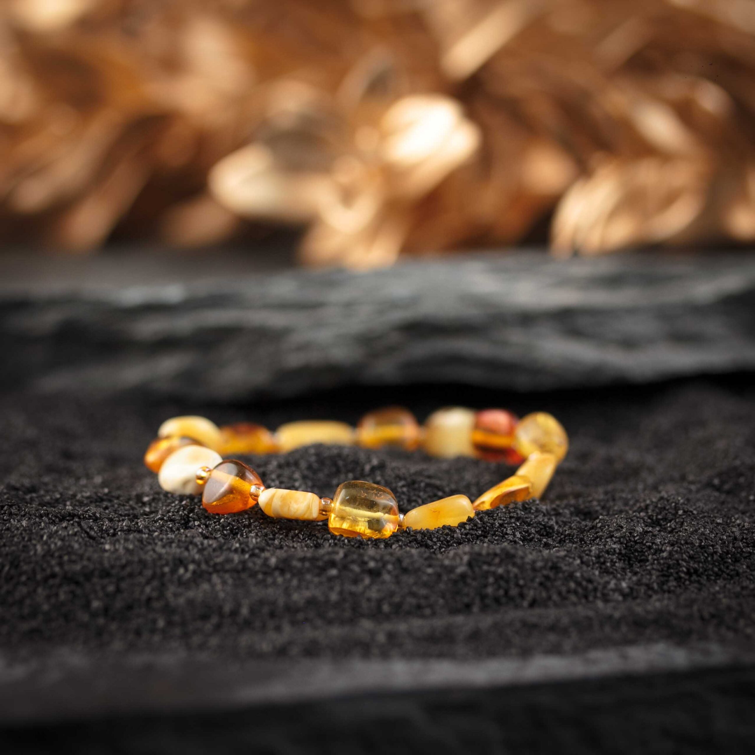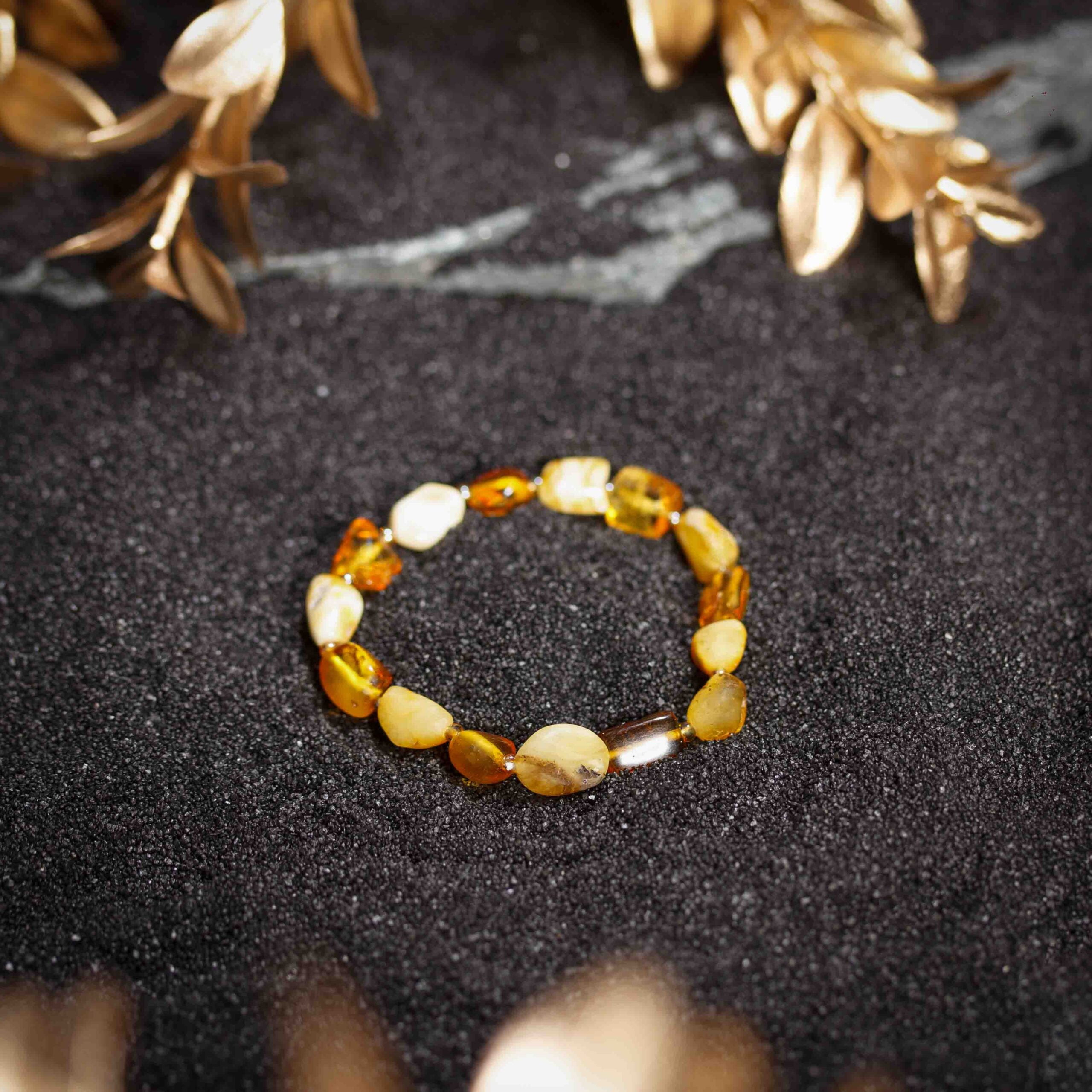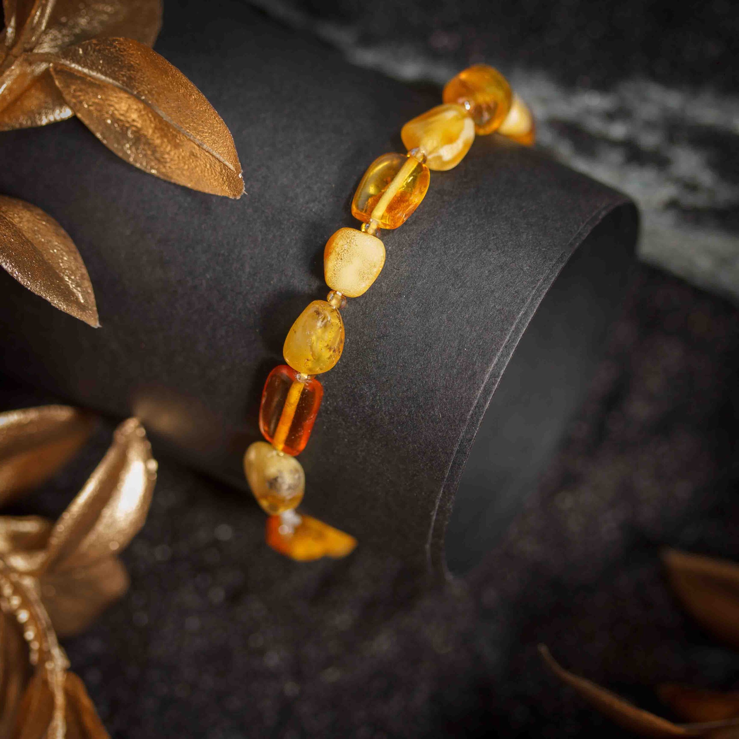 Bratara chihlimbar german, culoare galben cu nuante de miere, coniac si unt, pietre neregulate