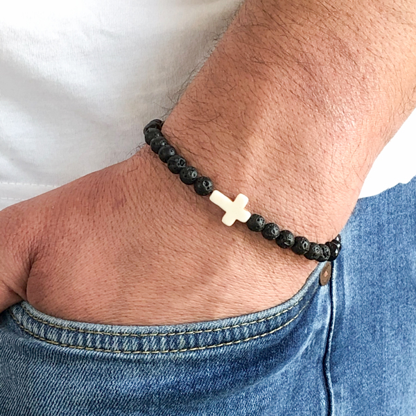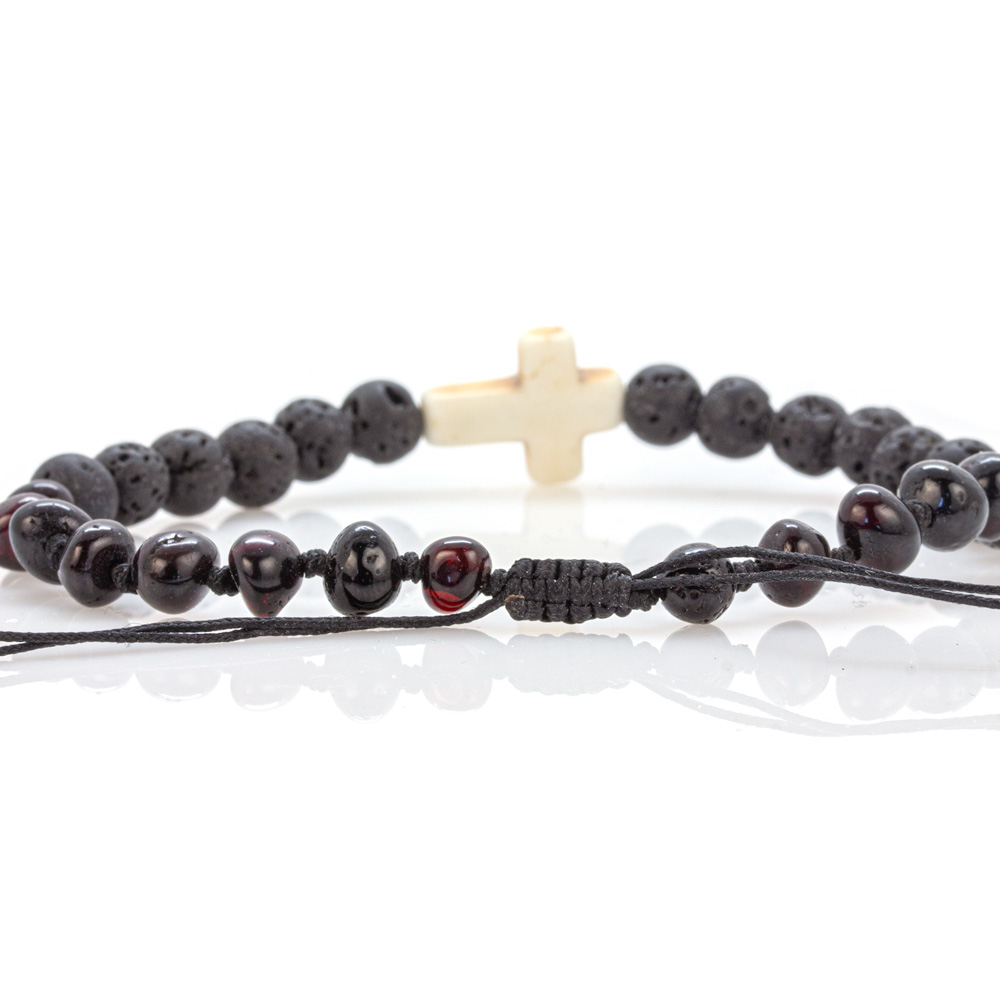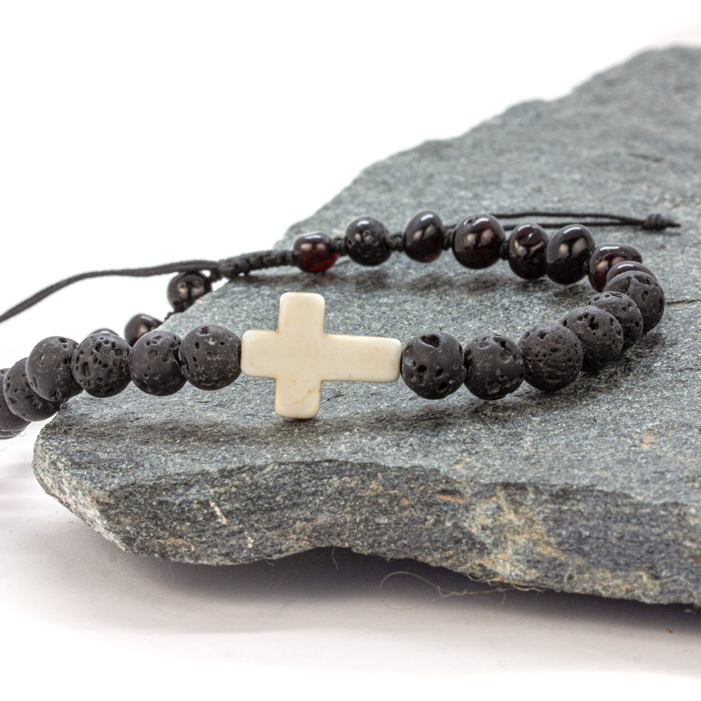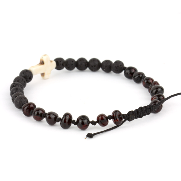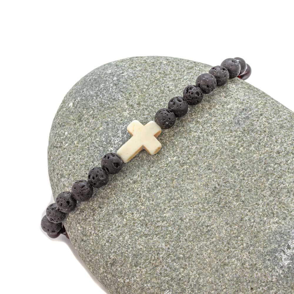 Brățară cruce Howlit | chihlimbar baltic | lavă vulcanică