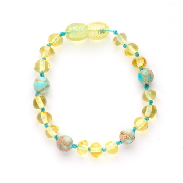 Brățară copii din chihlimbar baltic galben & regalit turcuaz