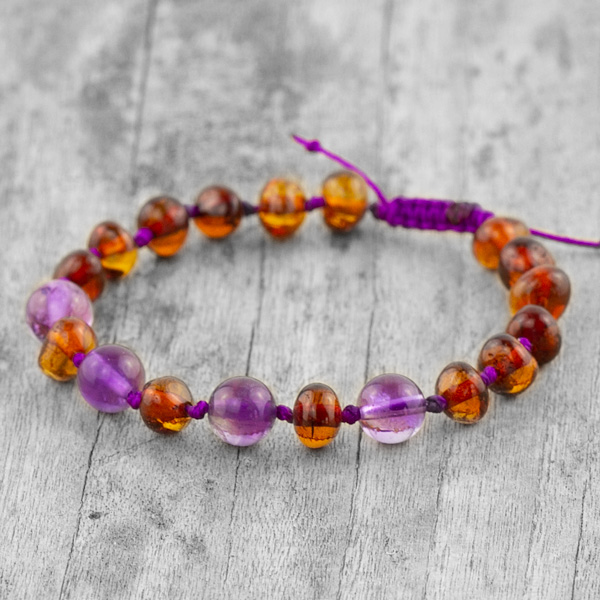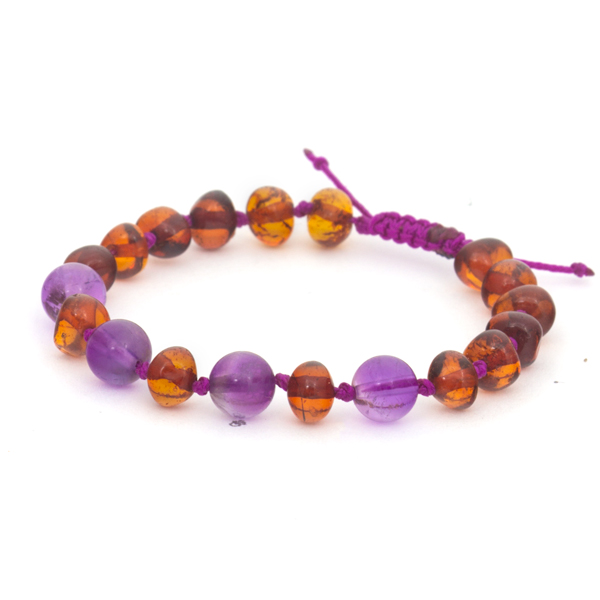Brățară copii din chihlimbar baltic maro & ametist – Calm și Nopți Liniștite