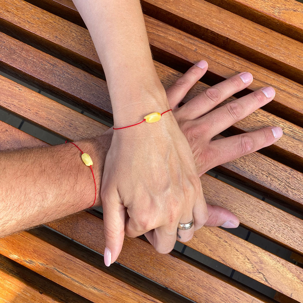 Poartă un simbol al iubirii voastre în fiecare zi! Acest set de brățări de cuplu este modalitatea perfectă de a fi în mintea celuilalt la fiecare privire aruncată spre încheietură. Realizate manual în atelierul nostru, brățările din chihlimbar alb regal sunt unice, stilate și pline de energie pozitivă.