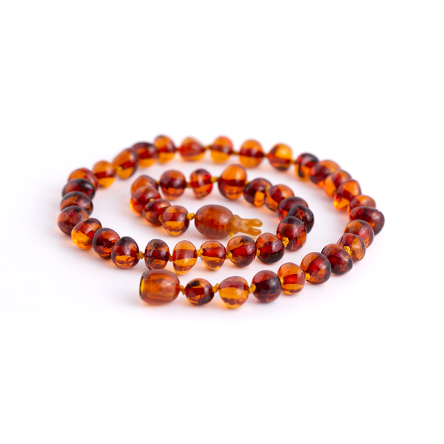 În contact cu pielea un colier chihlimbar eliberează cantităţi minuscule de ulei cu conţinut de acid succinic care este absorbit de organism. Acidul succinic este cunoscut pentru proprietatile analgezice de calmare.