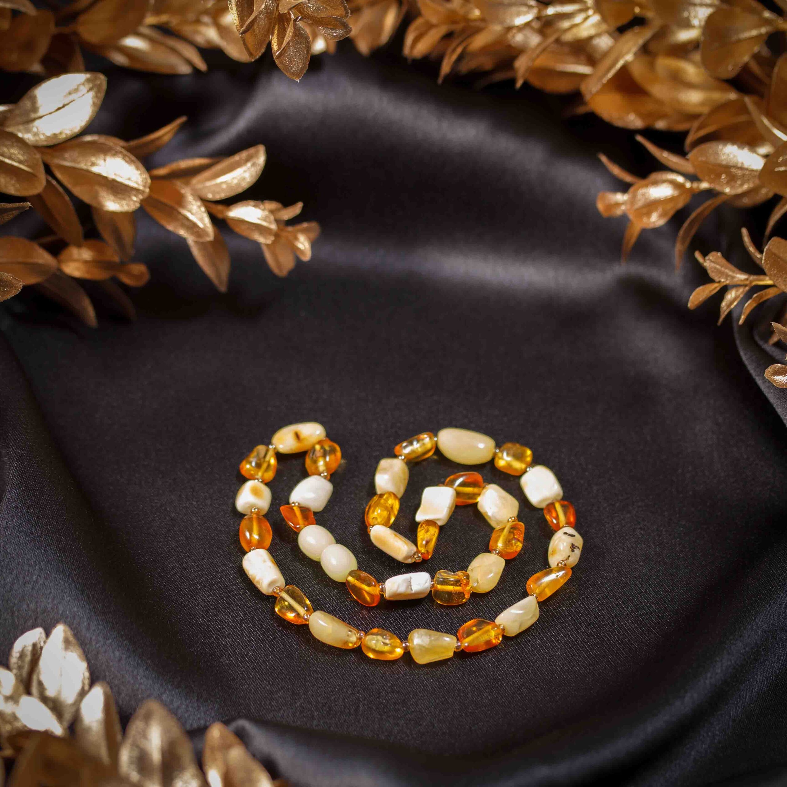 - Proprietăți calmante și relaxante: Chihlimbarul este cunoscut pentru efectele sale calmante asupra sistemului nervos. Prin purtarea acestui colier, bebelușul sau copilul tău poate experimenta o senzație de liniște și relaxare, contribuind la crearea unei atmosfere plăcute și pașnice.