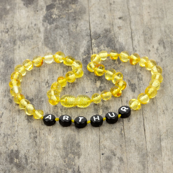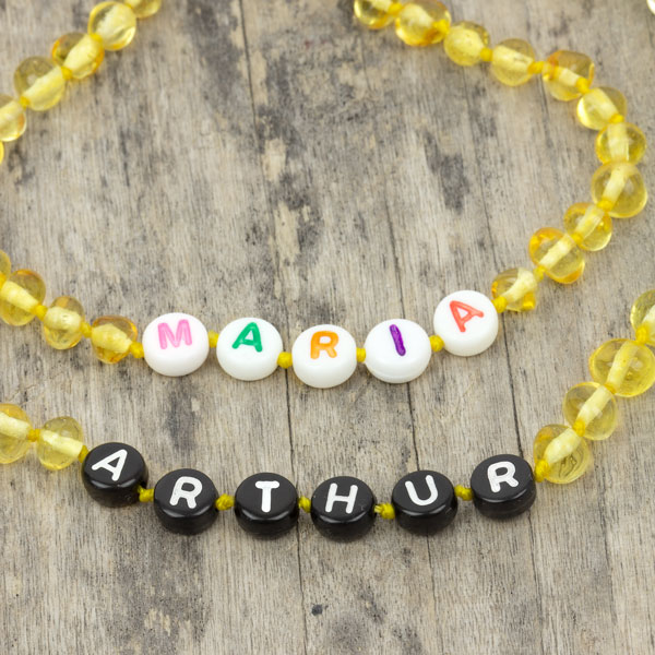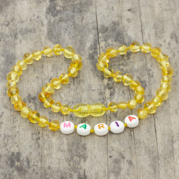 model: colier chihlimbar copii cu nume culoare galben – lamaie