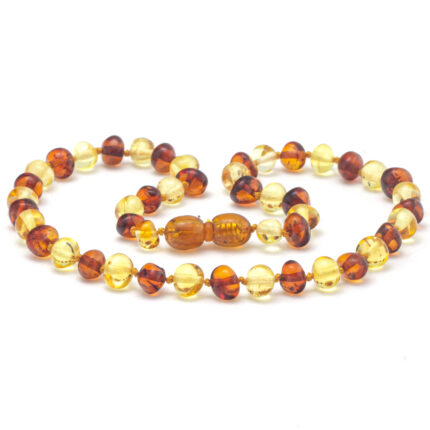 Colierul din chihlimbar baltic este cea mai populara bijuterie in randul bebelusilor/copiilor din toata lumea datorita proprietatilor terapeutice recunoscute ale chihlimbarului. Devenite cunoscute in ultimii 20 de ani datorita internetului, margelele din chihlimbar au fost observate de-a lungul timpului purtate de copiii familiilor regale, vedete de cinema, sefi de stat; fiind considerat din antichitate un talisman cu multiple beneficii asupra organismului uman indiferent de varsta.