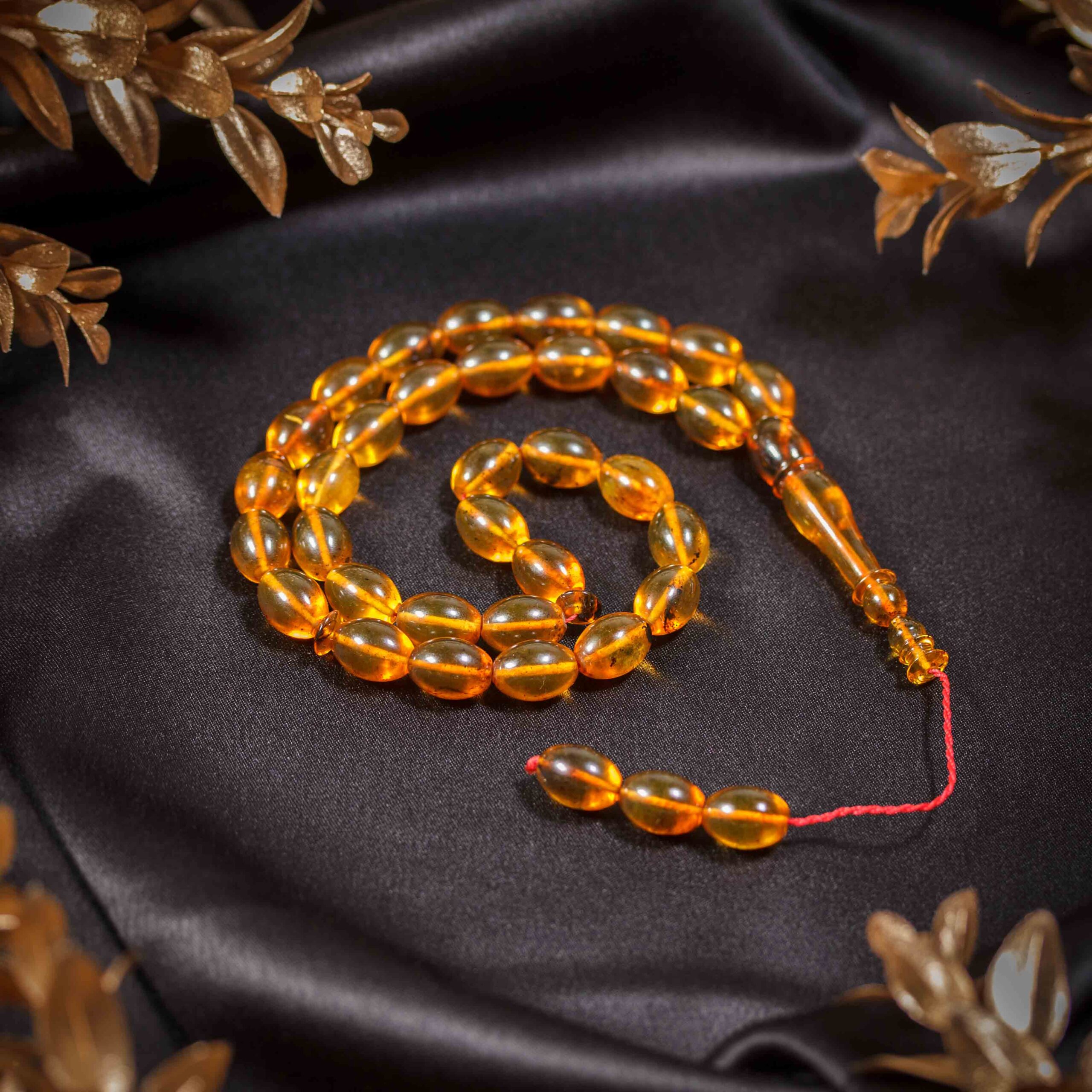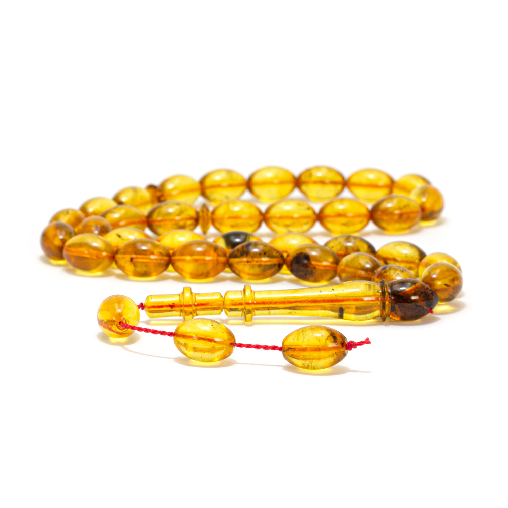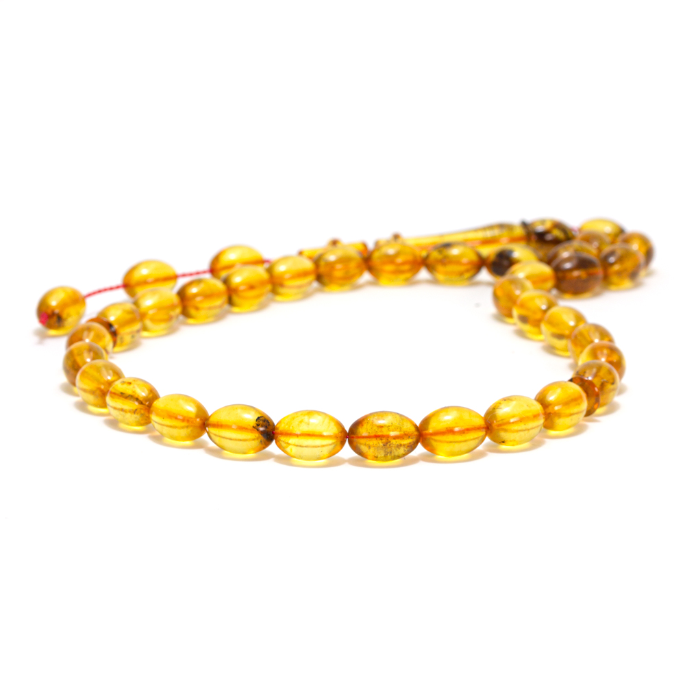 - Sirag de matanii chihlimbar din 33 boabe rotunde din chihlimbar baltic natural de culoare maro.