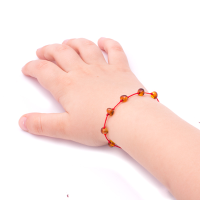 bratara chihlimbar copii snur rosu culoare coniac