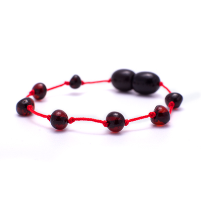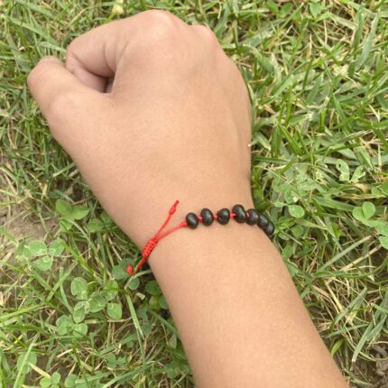 Brățară șnur roșu copii & mărgele chihlimbar negru – Protecție naturală & energetică