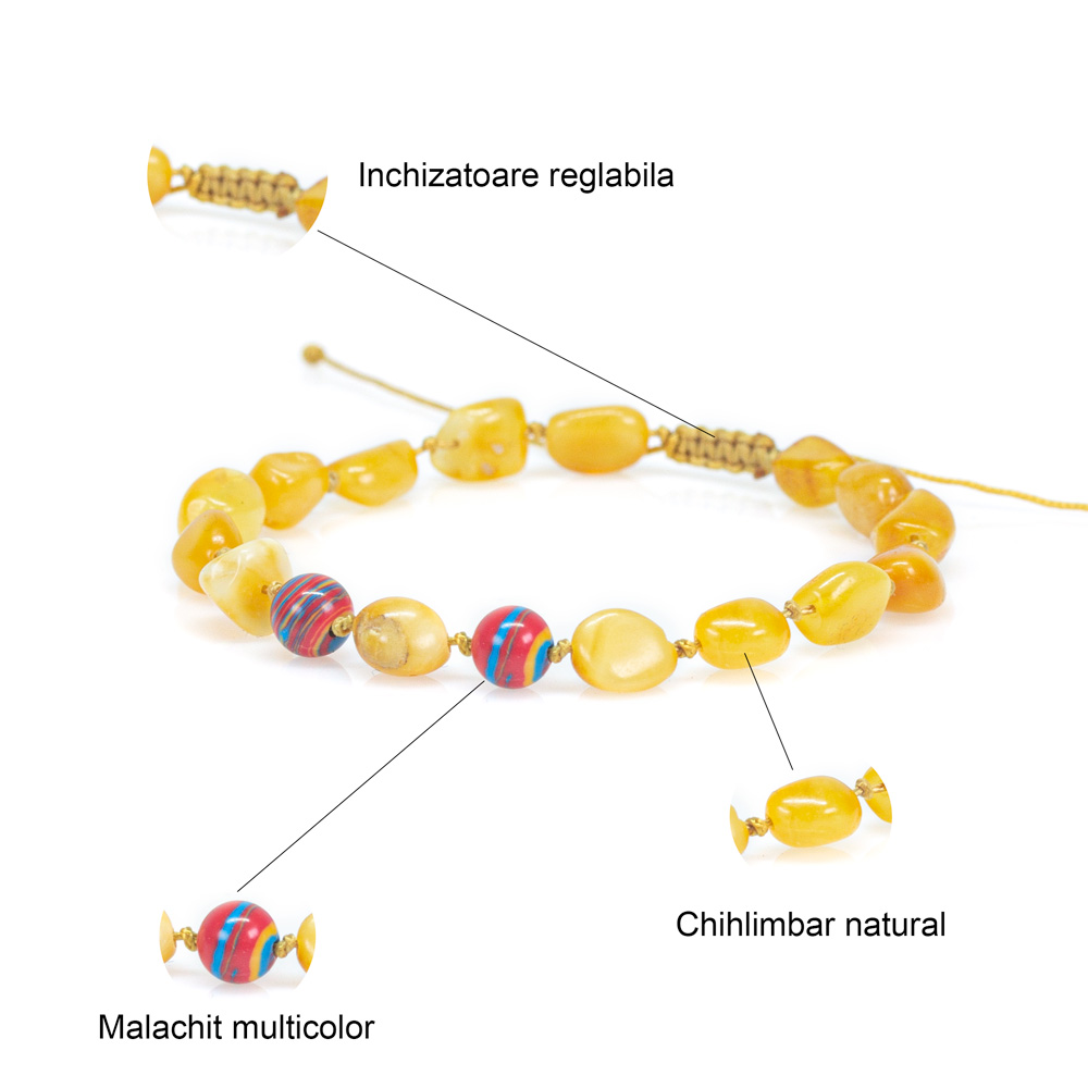 Pietre: chihlimbar natural butterscotch, malachit multicolor;