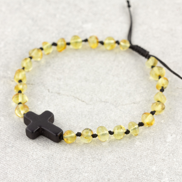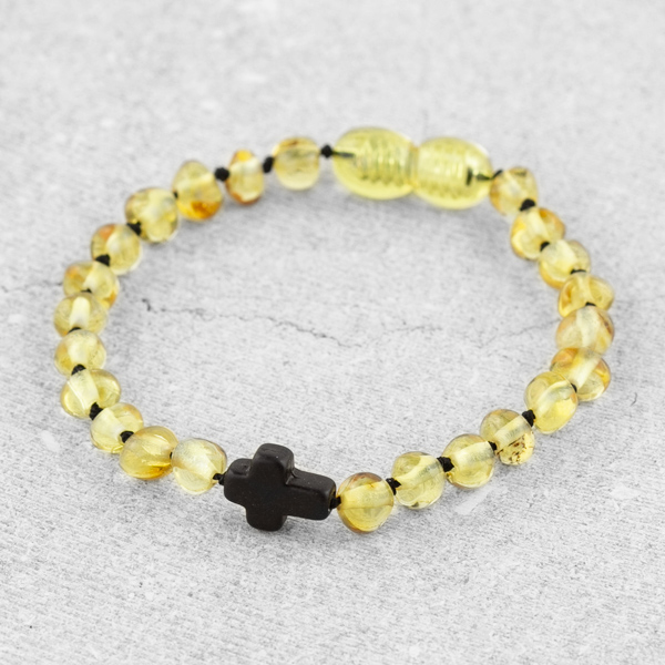 Cruciulița neagră adaugă acestui set o dimensiune aparte — un simbol al credinței și al protecției divine, prezent în tradițiile creștine de milenii. Combinată cu chihlimbarul baltic galben-miere, transformă brățara într-un cadou cu o semnificație profundă, ideal pentru botez, zi de naștere sau orice moment special din viața familiei.