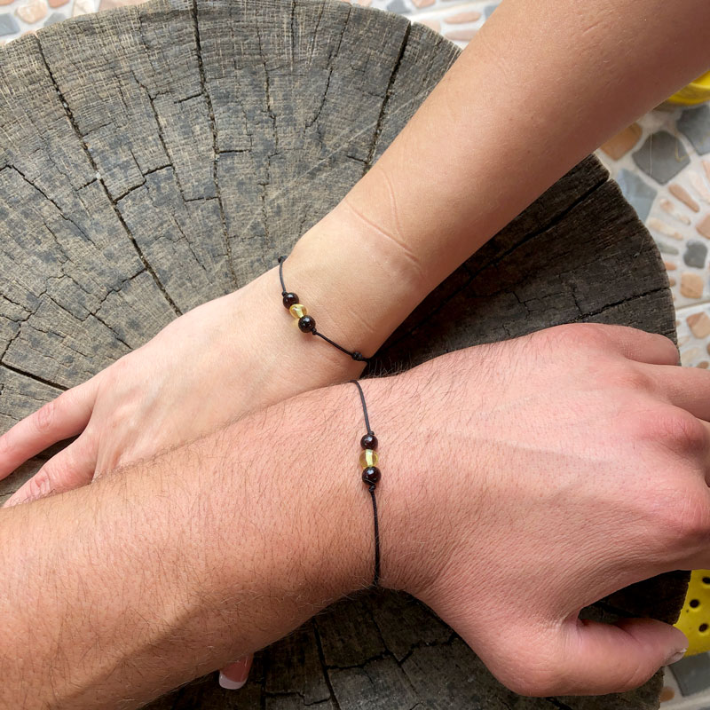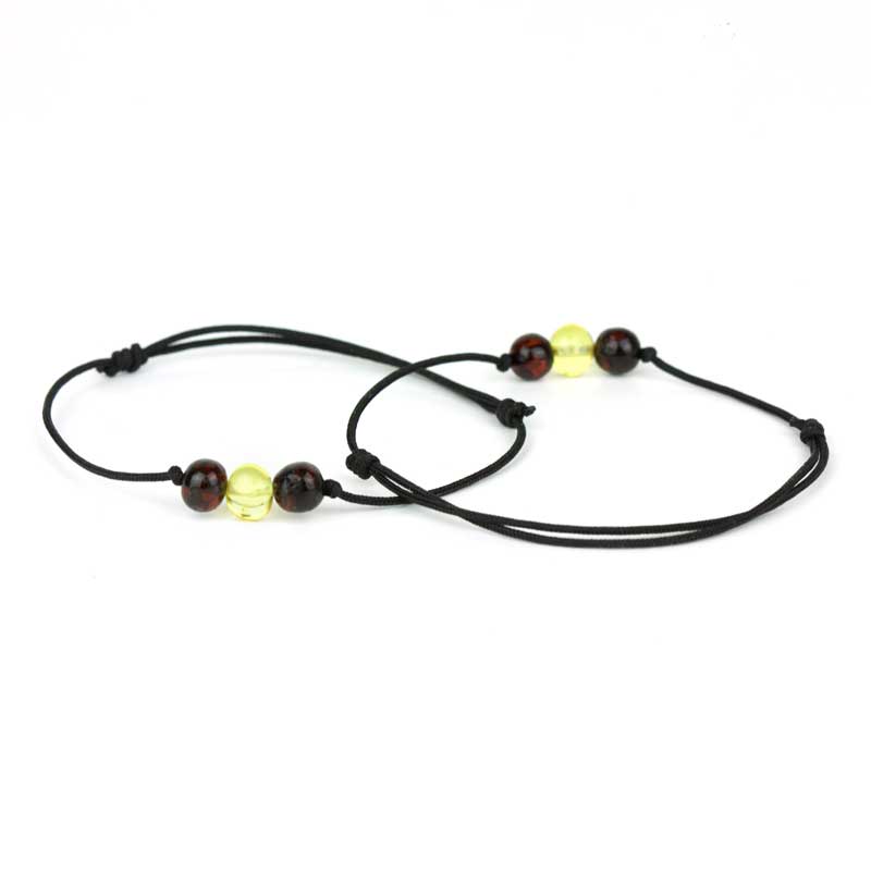 Set brățări cuplu EA & EL din chihlimbar baltic & șnur multicolor