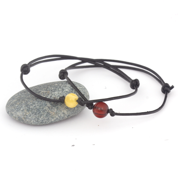 Set brățări cuplu din chihlimbar baltic & șnur piele