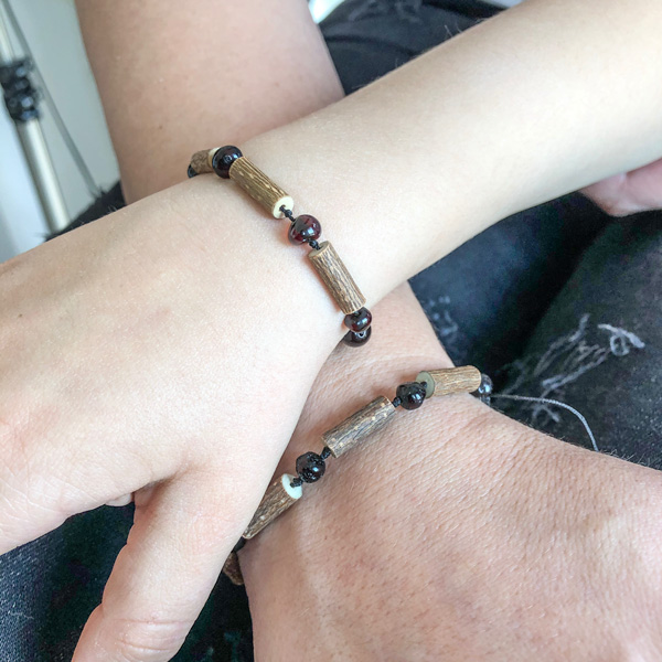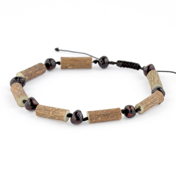 Set de brățări cu dublă acțiune naturală — chihlimbar baltic autentic negru-cireș și lemn de alun canadian (hazelwood) — o combinație sobră și deosebită, ce reunește energia profundă și protectoare a chihlimbarului negru cu proprietățile alcalinizante ale hazelwood-ului canadian.