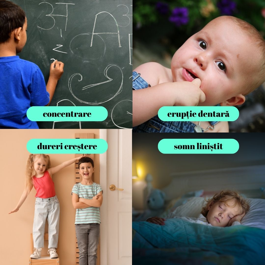 - asociat cu reducerea disconfortului din perioadele de creștere