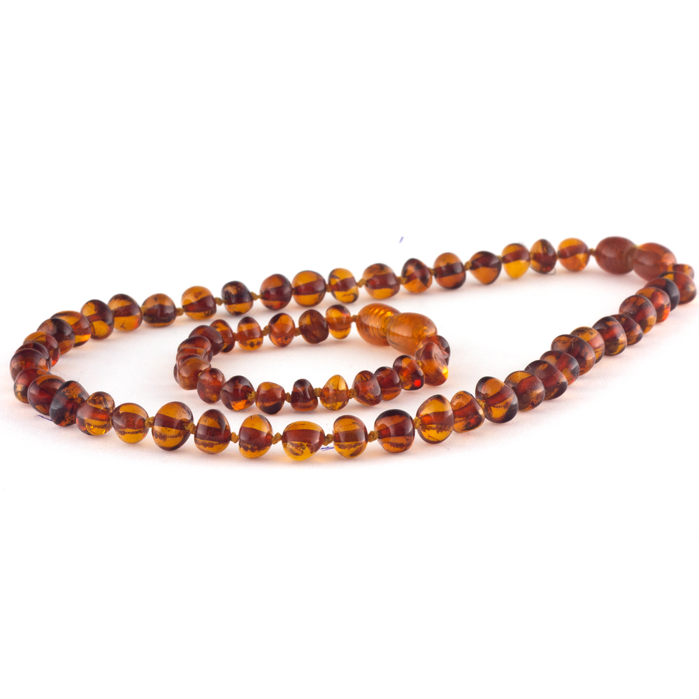 Colierele şi brăţările din chihlimbar sunt concepute şi realizate special pentru copii respectând legislaţia europeană astfel: Fiecare mărgeluţă este înnodată individual astfel încât dacă colierul sau brăţara se rupe mărgelele nu se vor imprăştia. Sistemul de închidere al bijuteriilor din chihlimbar pentru copii este realizat din plastic special pentru a nu da alergii precum cele din metal. Închizătoarile colierelor pentru copiii de până în 3 ani sunt de tip „pop-up” si se deschid automat daca sunt agăţate sau trase cu o tensiunde de peste 6.8 kg. Închizătorile brăţărilor sunt cu acţiune prin înşurubare pentru a nu putea fi desfăcute de cei mici. Recomandăm supravegherea copiilor sub 3 ani în timpul purtării bijuteriilor din chihlimbar şi mutarea colierului înfăşurat de două ori la gezna piciorului în timpul orelor de somn