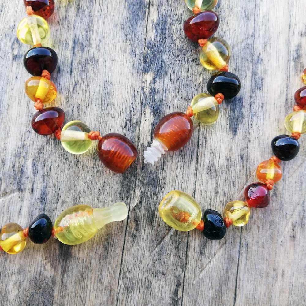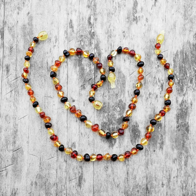 Colierele şi brăţările din chihlimbar sunt concepute şi realizate special pentru copii respectând legislaţia europeană astfel: Fiecare mărgeluţă este înnodată individual astfel încât dacă colierul sau brăţara se rupe mărgelele nu se vor imprăştia. Sistemul de închidere al bijuteriilor din chihlimbar pentru copii este realizat din plastic special pentru a nu da alergii precum cele din metal. Închizătoarile colierelor pentru copiii de până în 3 ani sunt de tip „pop-up” si se deschid automat daca sunt agăţate sau trase cu o tensiunde de peste 6.8 kg. Închizătorile brăţărilor sunt cu acţiune prin înşurubare pentru a nu putea fi desfăcute de cei mici. Recomandăm supravegherea copiilor sub 3 ani în timpul purtării bijuteriilor din chihlimbar şi mutarea colierului înfăşurat de două ori la gezna piciorului în timpul orelor de somn